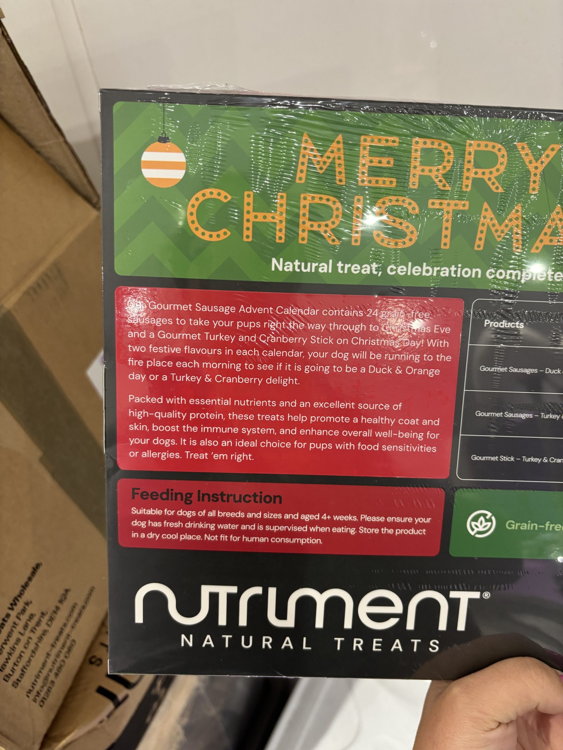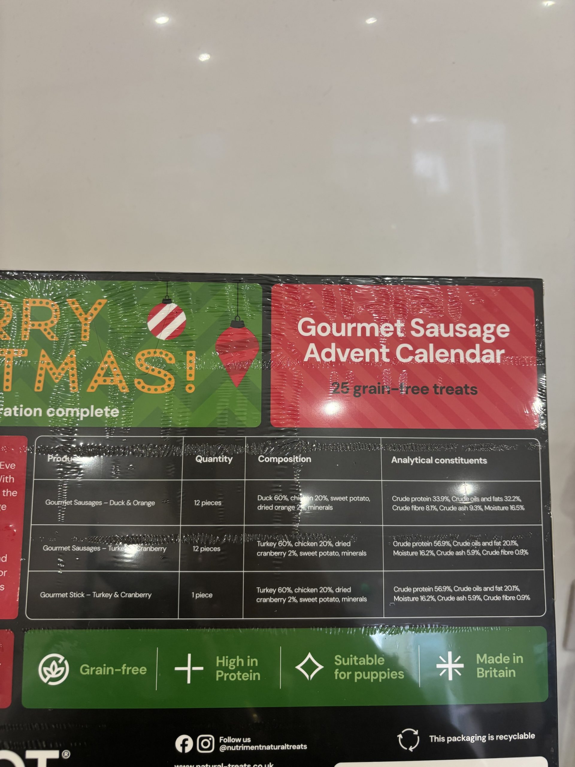 Gourmet Sausage Advent Calendar contains 24 grain-free sausages to take your pups right the way through to Christmas Eve and a Gourmet Turkey and Cranberry Stick on Christmas Day!